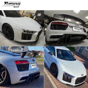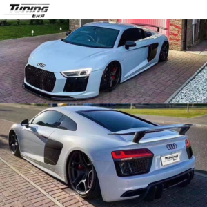 Turn the Audi R8 V10 2015-2019 into a stunning V Style look with this Carbon Fiber Body Kit. Built for drivers who want bold style and less weight, this kit delivers an aggressive look. It uses advanced materials to improve both the appearance and the airflow around your vehicle, taking a true head-turning upgrade.