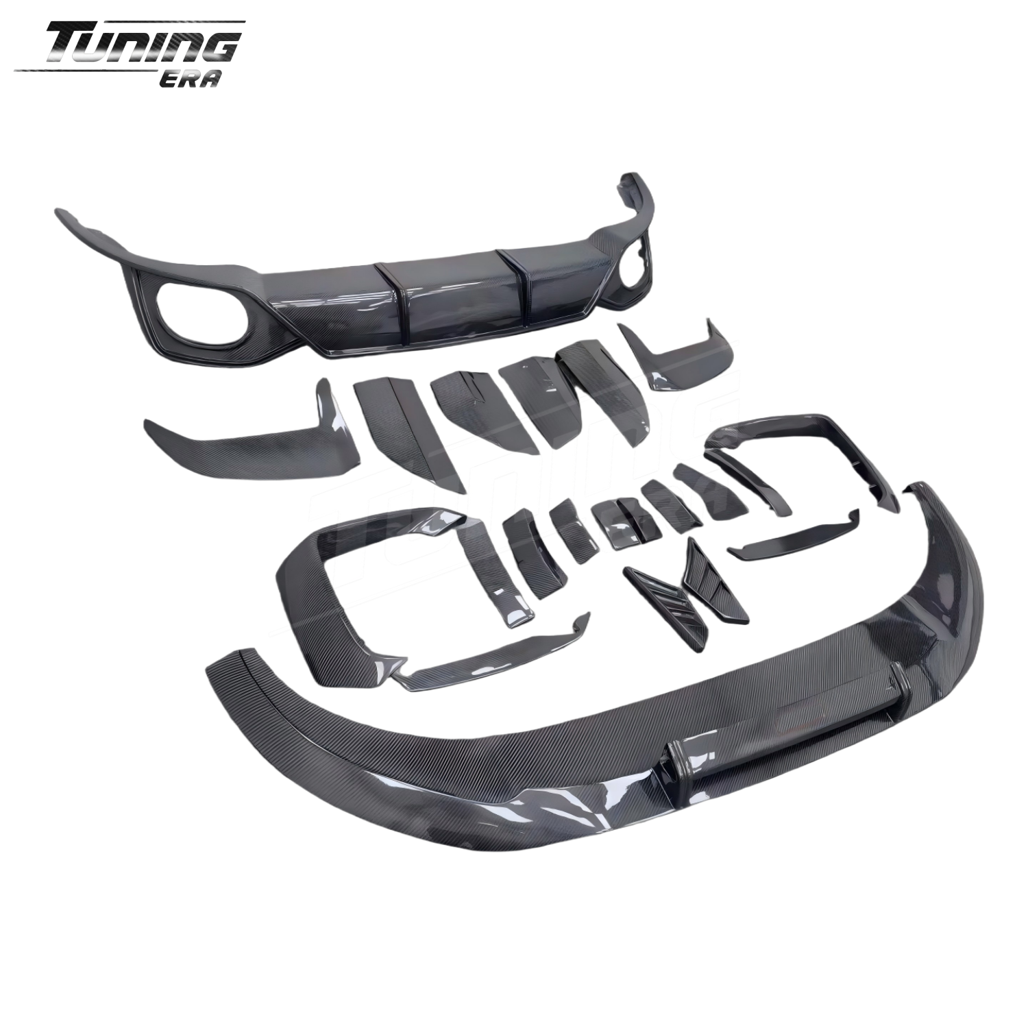 Choose your preferred weave pattern (twill, forged, or plain) and surface finish (high-gloss, matte, or satin). Available as a complete kit or individual components — you buy exactly what you need.
