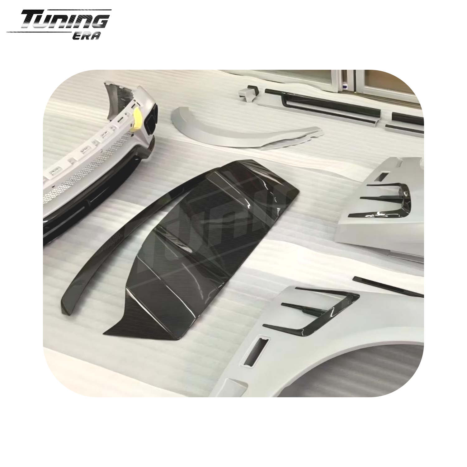 Choose your preferred weave pattern (twill, forged, or plain) and surface finish (high-gloss, matte, or satin). Available as a complete kit or individual components — you buy exactly what you need.