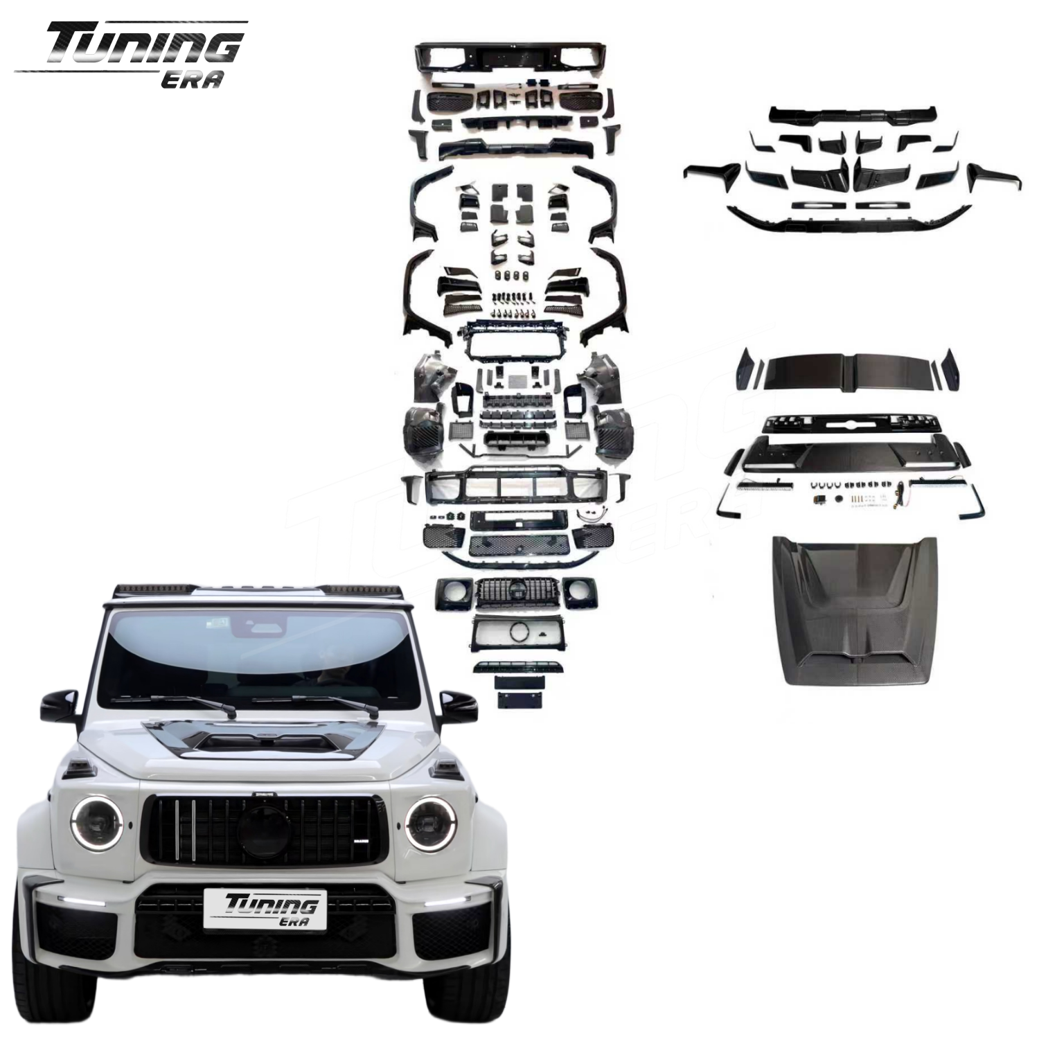 Turn your G-Wagon into the newest stunning G800-style look with this Dry Carbon Fiber Body Kit. Built for drivers who want bold style and less weight, this kit delivers an aggressive widebody look. It uses advanced materials to improve both the appearance and the airflow around your vehicle, giving you a true head-turning upgrade.